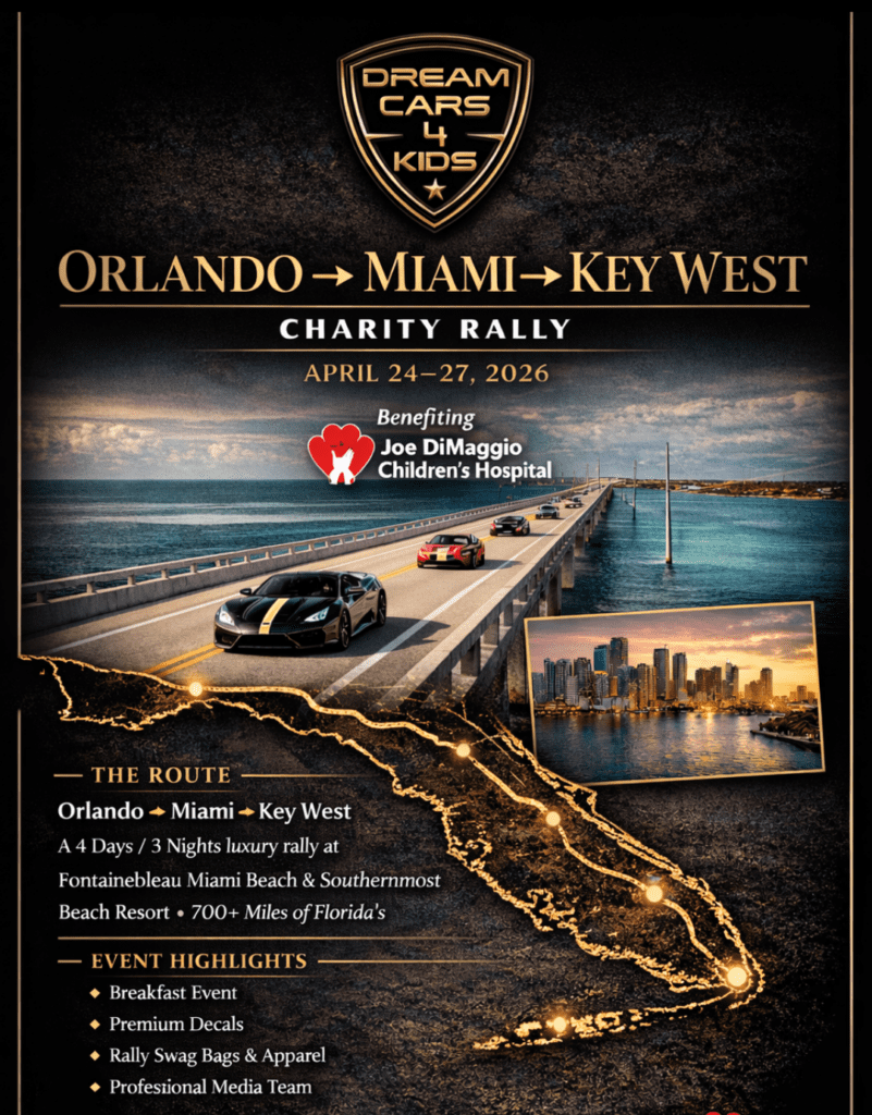 Our Mission is to bring amazing sport and luxury cars to children who may never have the opportunity to drive or see these high-performance vehicles in person during their lifetime. Our ultimate goal is to make children’s dreams come true while raising donations for charities benefiting children in need through our nationwide rallies and car shows.